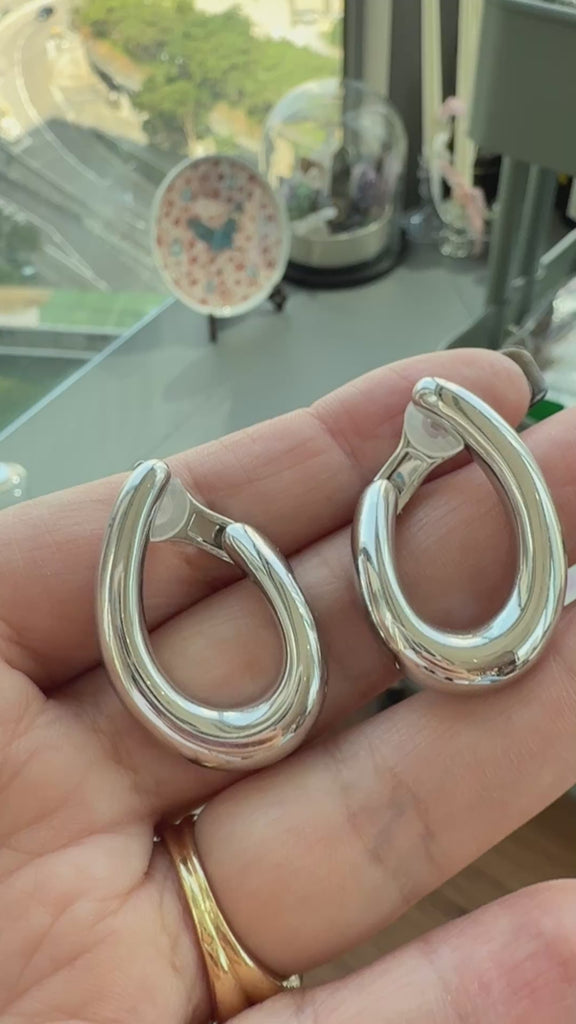 18k white gold Each of hoop design, length approximately 36mm, each signed Boucheron, numbered B9745249 French assay marks for gold.
